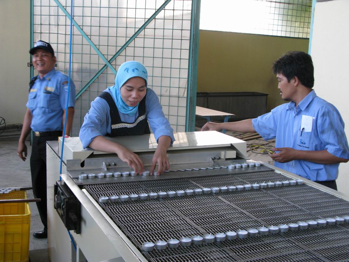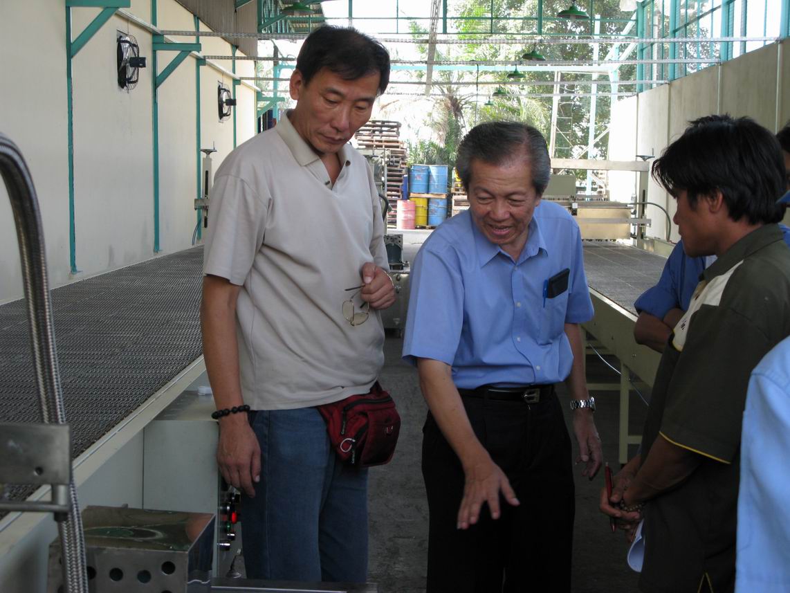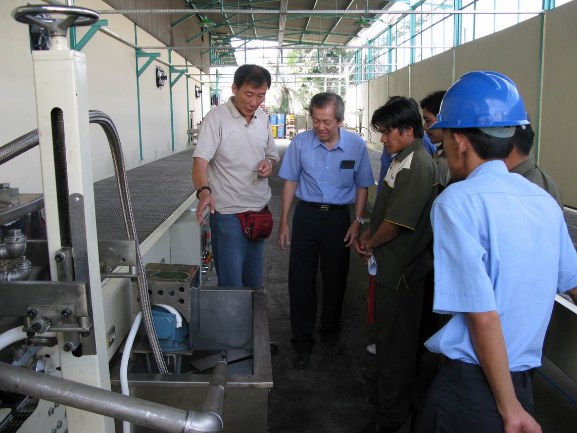 售后人员在印尼工厂指导工人使用灌装线